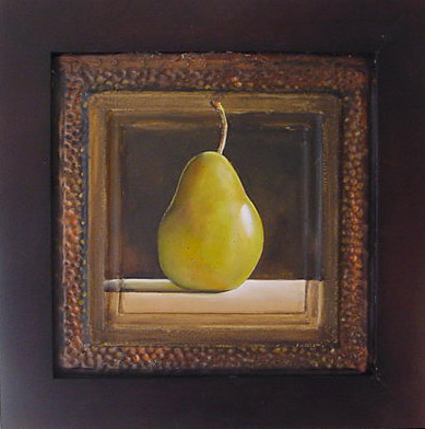 Dec 2 Original Pear Painting on Antique Tin Framed!