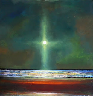 SOLD! Todays painting is for an original acrylic on wood panel 12x12 ready to hang. I call this painting "Man in the Moon" and if you look closely you will see a lone person on the beach. I love the colors and unique texture, truely an original painting.